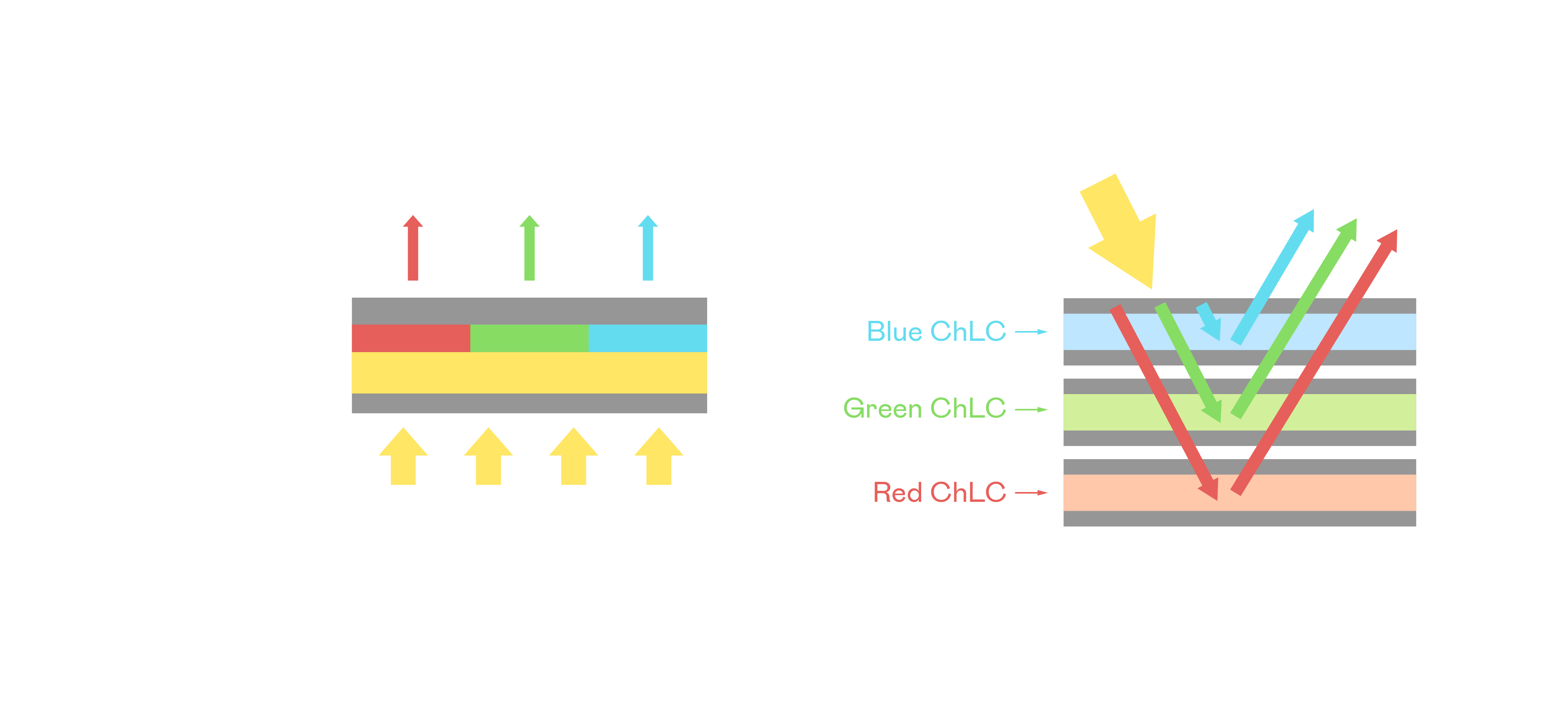 利来w66胆固醇液晶显示器是由红、绿、蓝三层胆固醇液晶面板堆叠而成,并采用无彩色滤光片设计,减少环境光在反射过程中的损耗。